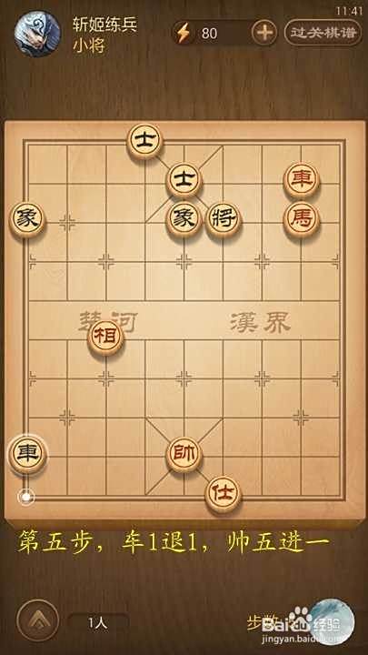 第五步,车1退1[继续将军],帅五进一;如果帅继续五进一,黑棋则退车将。红方相七退九吃车。