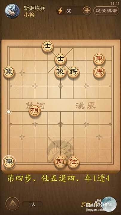 第四步,仕五退四[吃炮],车1进4[继续将军]