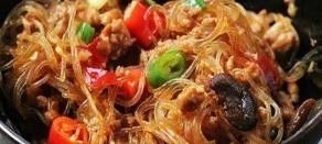取出一只大碗,放入薯粉丝,加入清水浸泡至泡软,捞出,沥干,备用。猪肉洗净,去血水,切薄片,切丝,再切末,备用。葱洗净,切末,大蒜剥皮,拍碎,生姜洗净,切薄片,切丝,切末,备用。青辣椒洗净,切圈,红辣椒洗净,切圈,备用。