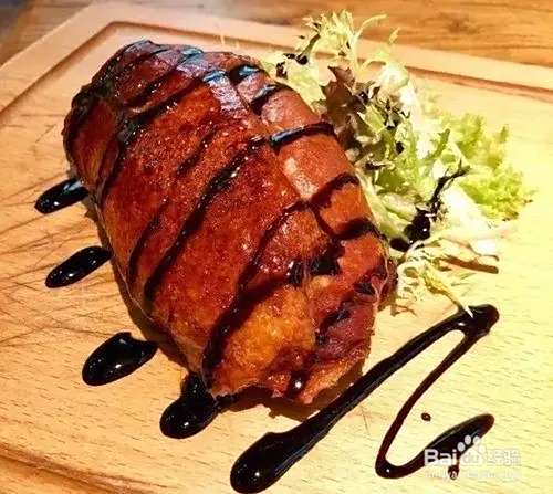 煎好的鸭胸肉放入盘中,挤上黑胡椒酱,食用时用刀切片即可。