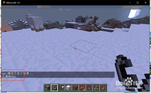 然后主人按电脑键盘上的T键,打开指令输入,会显示在屏幕的左下角的,然后输入/kill ID,其中ID就是玩家对的游戏名称,比如如图所示,玩家是aaa,然后我们按下T键,输入/kill aaa ,就会把aaa清除出我们饿这个世界啦,如图所示