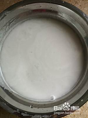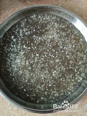 马蹄粉倒入另一份445克清水,搅拌融化,均匀不要沉淀,用过滤筛过滤一下更细腻。