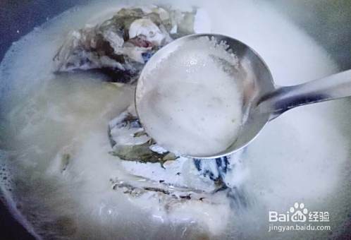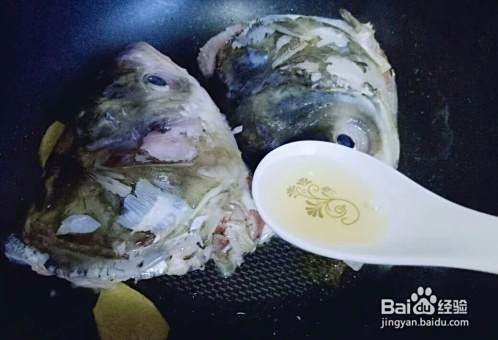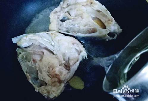 加入鱼头煎至两面微黄。
