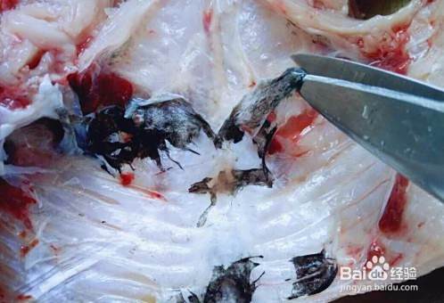 用食品剪刀剪掉鱼鳃。