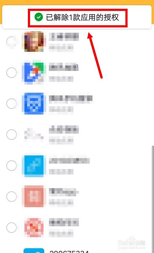 解除成功会有提示,成功解除1个应用的授权,以后再次登录这个应用需要你的重新授权了。