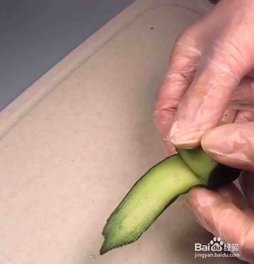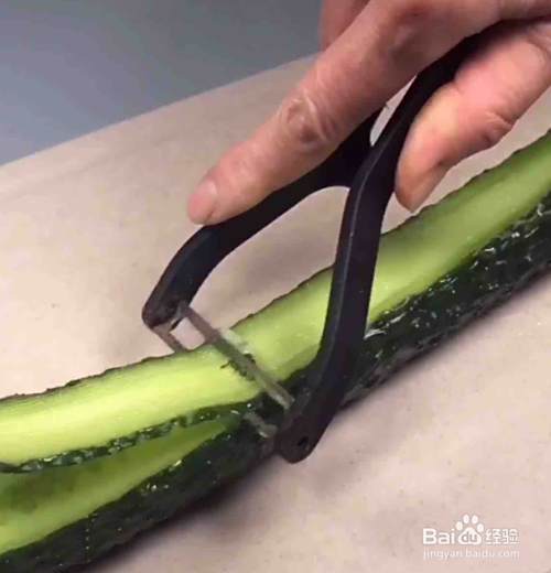 首先,我们把黄瓜用刮刀刨成薄片;