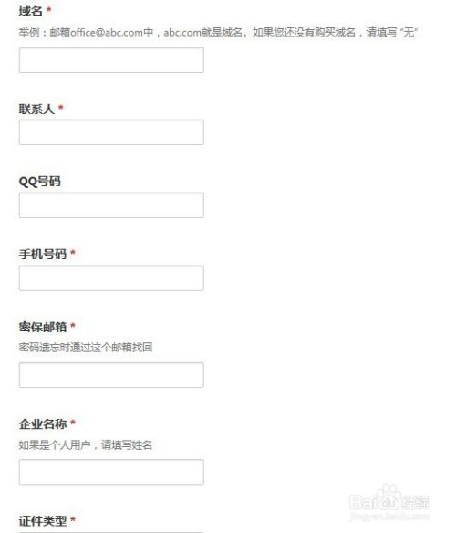 准备好开通新浪企业邮箱免费版(新浪免费企业邮箱)所需相关资料,主要包括: 域名;联系人;手机号码;密保邮箱;企业名称;证件号码;地址