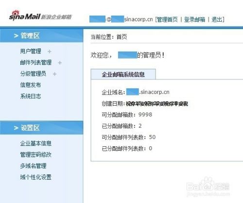 点击创建用户、绑定域名等按钮,就可以实施新浪企业邮箱免费版(新浪免费企业邮箱)管理工作了。