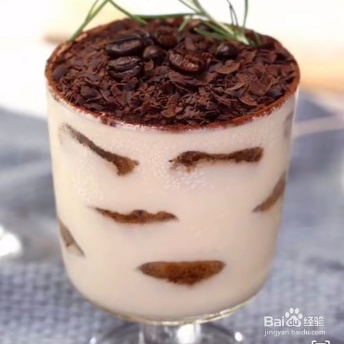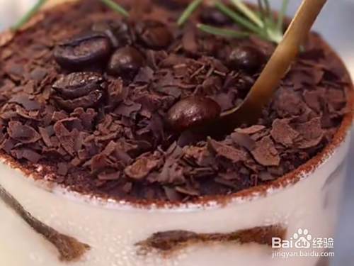 冷藏好的杯子拿出来,筛上一层可可粉,撒上巧克力碎和咖啡豆,就大功告成了。简单不失美味的提拉米苏小蛋糕做好啦,妈妈再也不用出去给宝宝买来吃了。