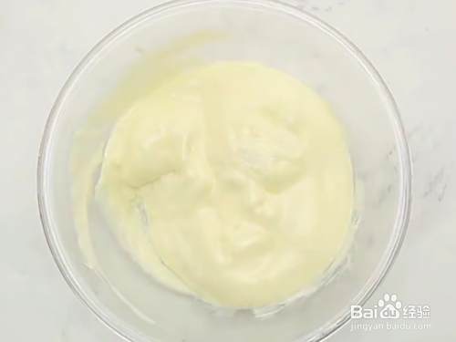 然后把打好的鸡蛋糊倒入软化好的芝士糊里,翻拌均匀。再次用打蛋器打一遍。