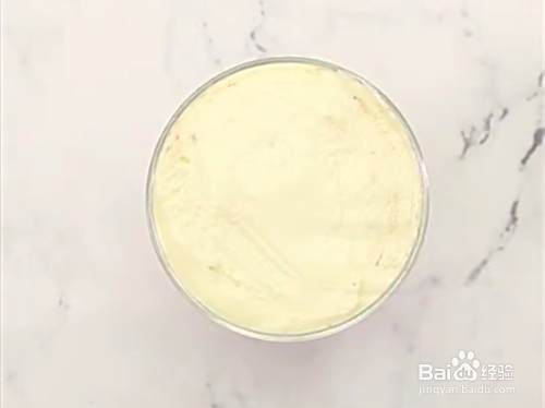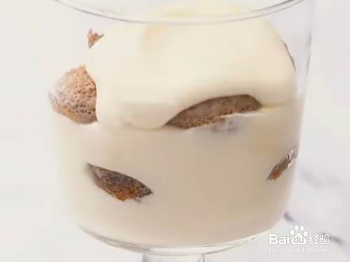 最后取一个蛋糕杯,放一层拌好的蛋糕糊、码上三块手指饼干、再放一层蛋糕糊,依次码到杯子八分满。