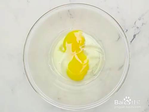 准备1个鸡蛋打入碗中,分两次加入14克糖粉,用电动打蛋器打发。备用。