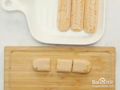 取半杯咖啡,把切好的手指饼干全部过一遍咖啡、备用。
