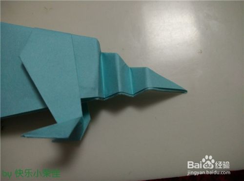 左侧向右折叠出一个突起,形成霸王龙的脖子,如图所示。