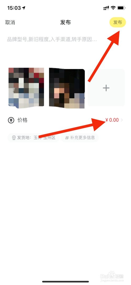 在发布页面里编辑要东西的详细写信息,然后设置价格,再点击右上角的发布即可。