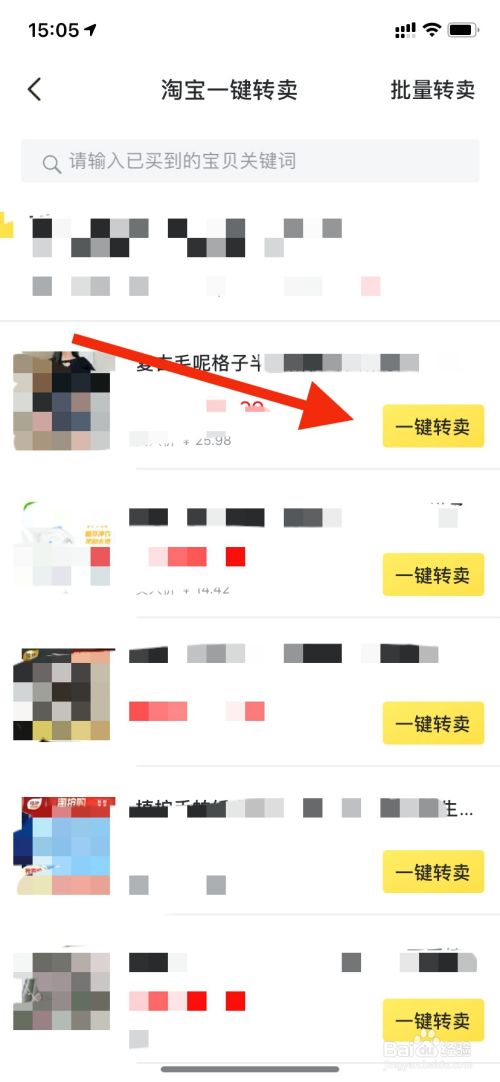 在淘宝一键转卖的页面里,找到要转卖的商品,然后点击旁边的一键转卖。