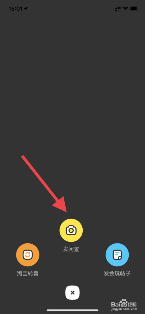 首先打开闲鱼APP,点击页面中间的加号,选择发闲置。