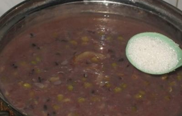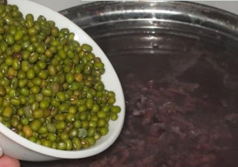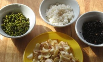 主料:黑米50g,大米50g,绿豆100g,百合2个