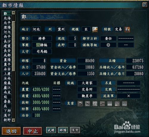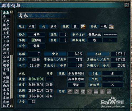 农业商业:4.2.城市规模为中,可以发展到最大4800点的商业,农业较洛阳高。