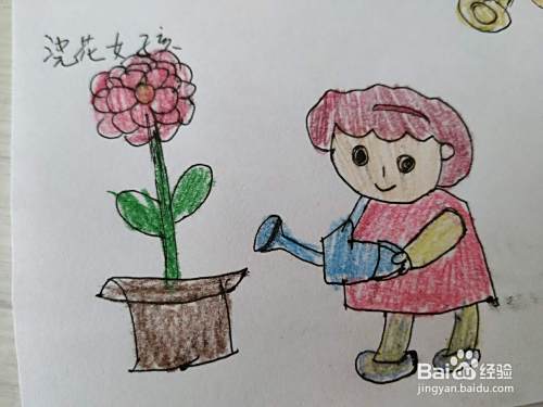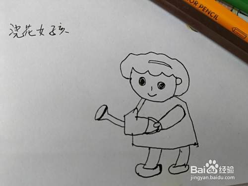 最后拿出我们的彩笔,给浇花的小女孩涂上颜色,是不是涂上颜色后的浇花女孩简笔画更加好看了呢。