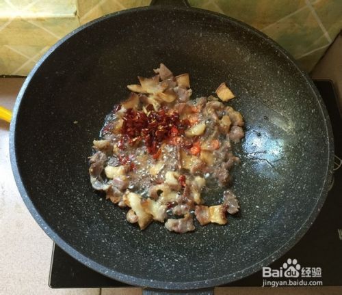 坐锅点火,锅中不放油,直接下腊肥肉。