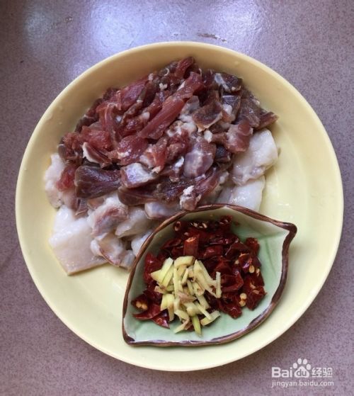 腊肉,洗净后肥瘦分开切片。干辣椒,生姜切碎末。