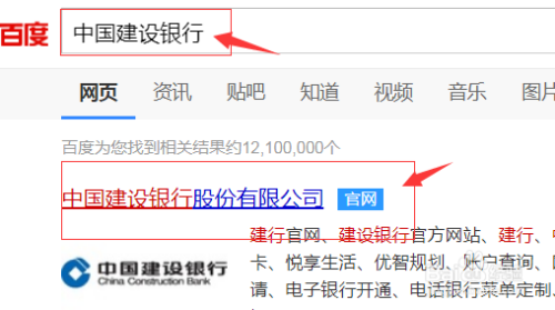 首先打开浏览器搜索,在搜索栏输入“中国建设银行”,搜索后找到中国建设银行官网并登录。
