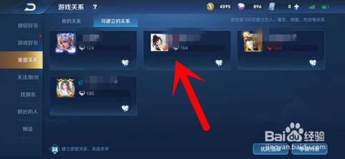 我们在此界面即可查看亲密度达到可建立关系的好友。