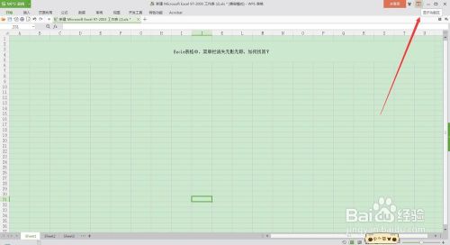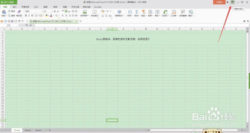 我们把目光移到Excle表格的右上角,找到正方形框框中有个向下的箭头标志按钮,如图所示,这个就是显示功能区的按钮,只要点击它,就能可以显示出表格中的菜单栏功能区。