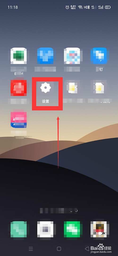 打开oppo手机,下方有三个虚拟键位,说明手机在虚拟按键下工作,只能点击屏幕,不能滑动。我们点击【设置】图标,进入设置。