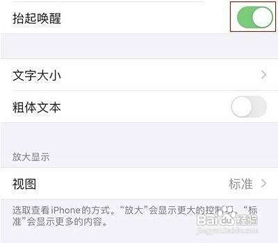 进入显示与亮度界面,下滑找到抬起唤醒开关是关闭状态。