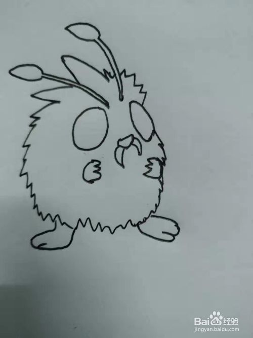 接着用波浪形画上身体,类似一个带尖刺的椭圆;