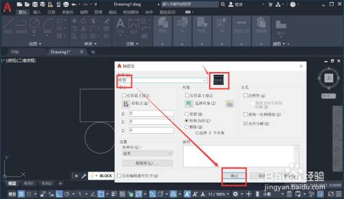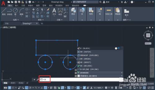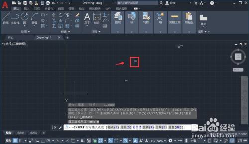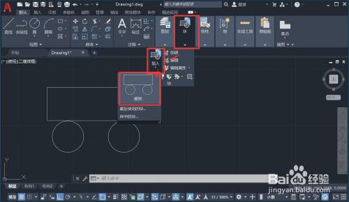 工具栏依次点击【块】>【插入】,就可以看到刚刚定义的图形,点击该图形,然后返回到绘图界面。