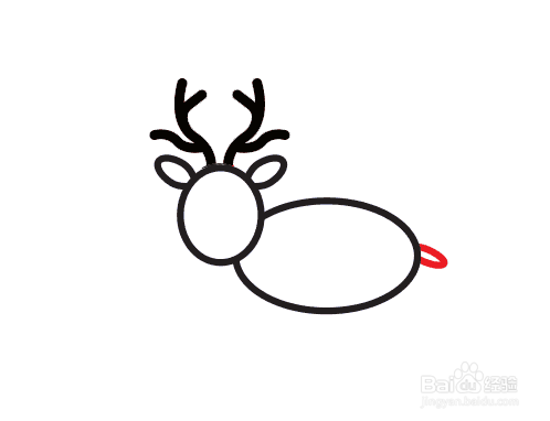 小椭圆的右下方画另一个大一点的椭圆,这是鹿的身子。