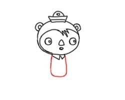 接着,心爱头部下方画领子;而后画身体。他的身体是有些像瓶子的形状。