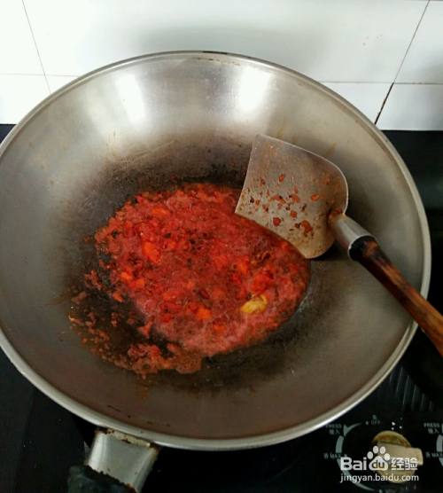把胡萝卜和西红柿的汁也倒入炒炒。