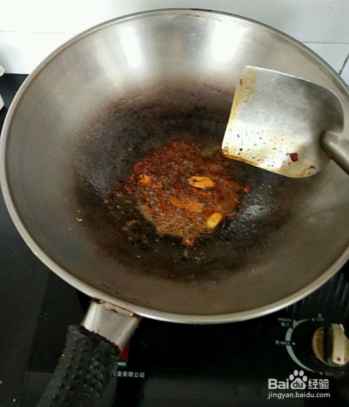 锅里放油,加火锅底料+姜+蒜,炒香。