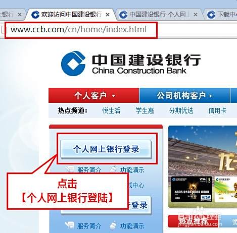接下来我们就要登陆网上银行。我们登陆中国建设银行 个人网上银行。