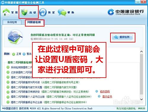 安装完成后,点击【高级】=》【网银盾检测】=》【立即检测】,在此过程中可能会提示设置网银盾密码,大家自行设置即可。设置完成后我们就可以进行支付了。
