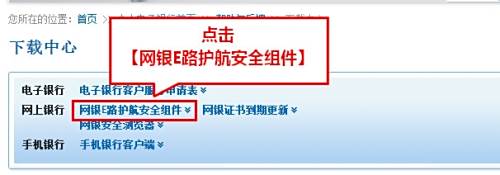 点击,登录页面的【第二步:下载“E路护航”安全组件】,然后点击【个人电子银行下载中心】。