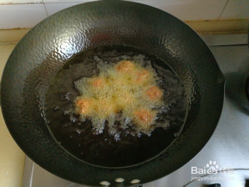 炸至金黄色时用漏勺捞出控油;