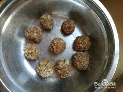 将肉馅团成大小一致的肉丸子;