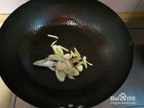 炒锅中留少许底油,放入葱、姜和大蒜煸炒出香味;