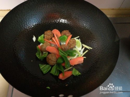翻炒几下后将胡萝卜和青椒放入锅中;