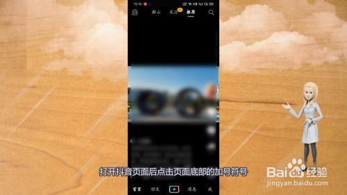 点击打开抖音,打开抖音页面后点击页面底部的加号符号。