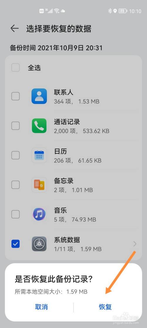 点击并确认恢复即可。