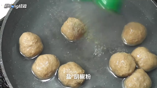 锅中倒水,放入丸子、盐、胡椒粉烧开。