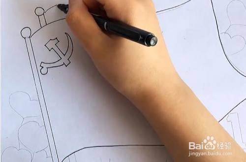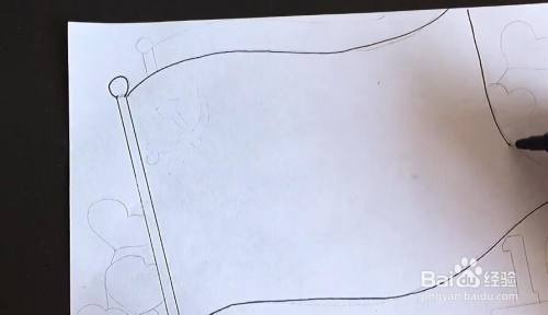 上方画出标志,后方再画一个旗杆。