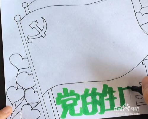 写上主题文字,党的生日,用粗一点的画笔。