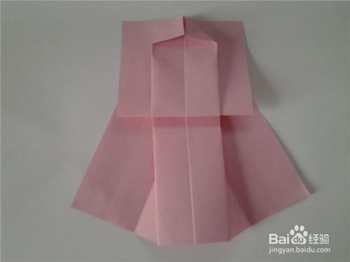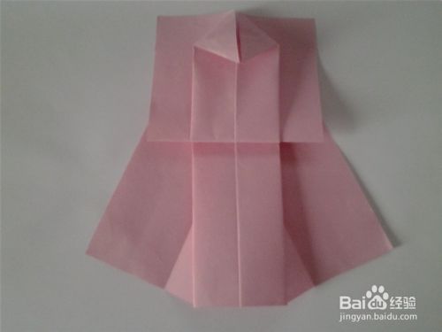 反过来,把比较长的那部分当作裙摆的部分,把折进去的分别往两边打开,如图。